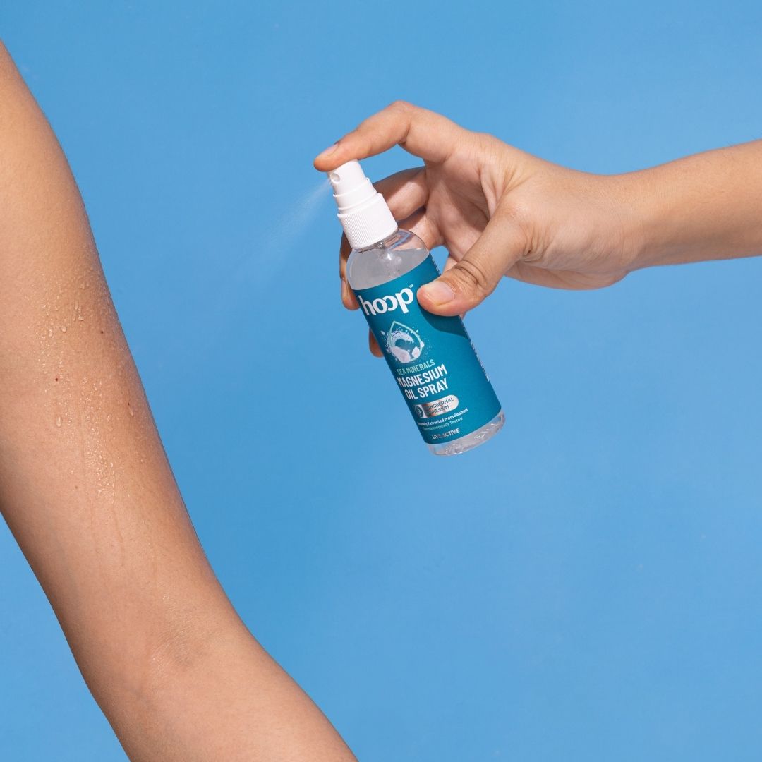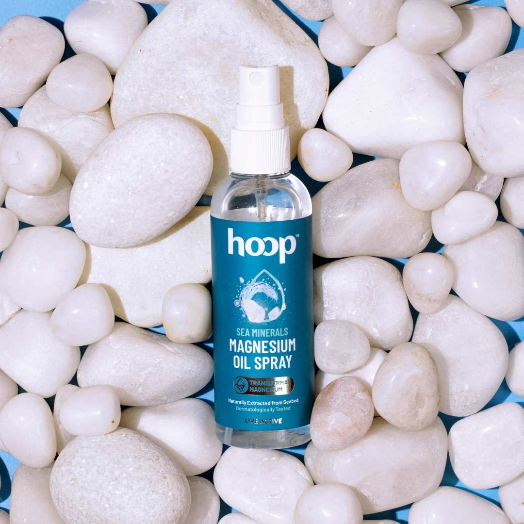 hoop Magnesium Oil Spray has natural, high-strength, non-diluted seabed-sourced magnesium chloride - an ingredient for muscle recovery and good sleep.